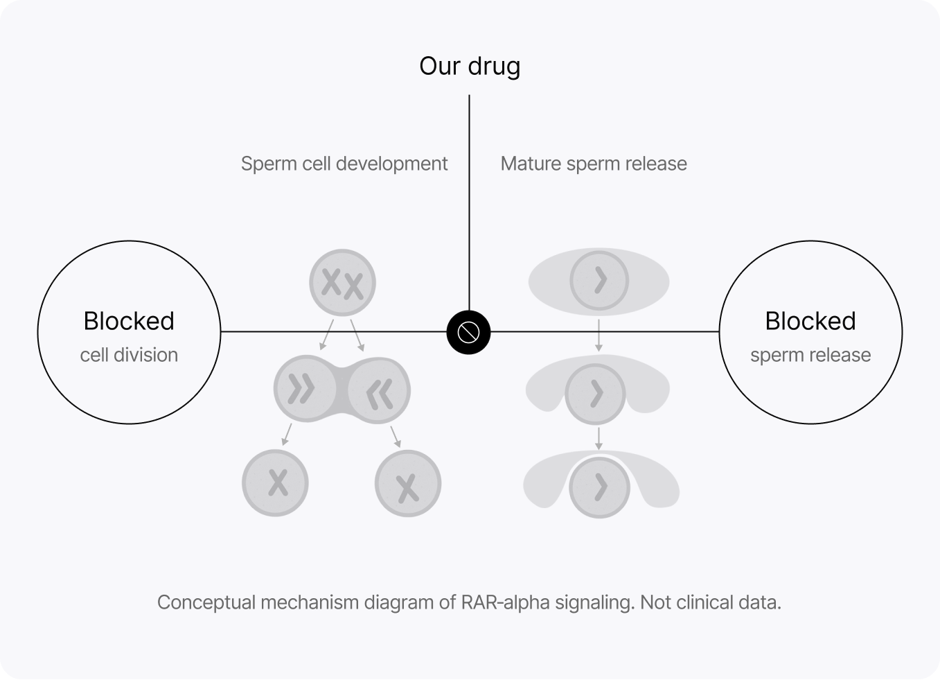 YourChoice Therapeutics is developing hormone‑free, oral investigational male contraception. YCT‑529 is a selective retinoic‑acid receptor‑alpha (RAR‑alpha) antagonist under clinical investigation and has not been approved by any regulatory authority.